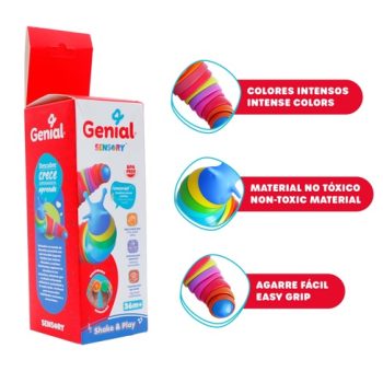 - Juguete sonajero sensorial, ideal para la estimulación temprana.