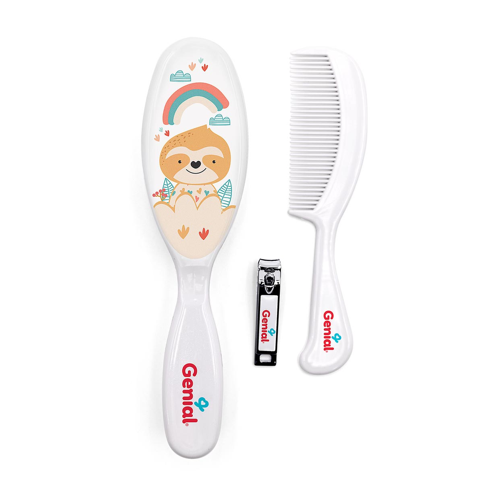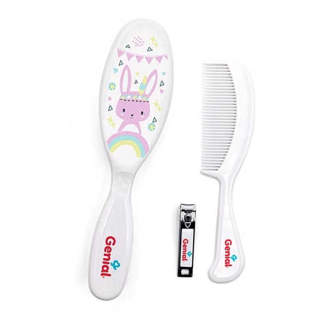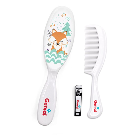 - El juego de cepillo y peinilla ha sido diseñado especialmente para el cuidado del tierno cuero cabelludo del bebé.